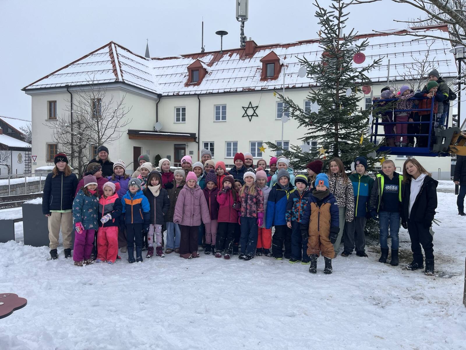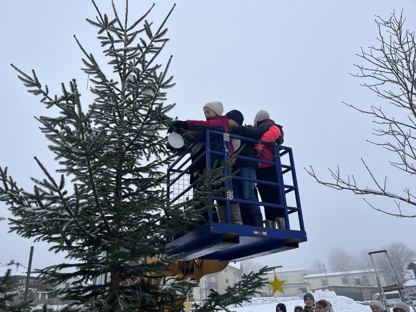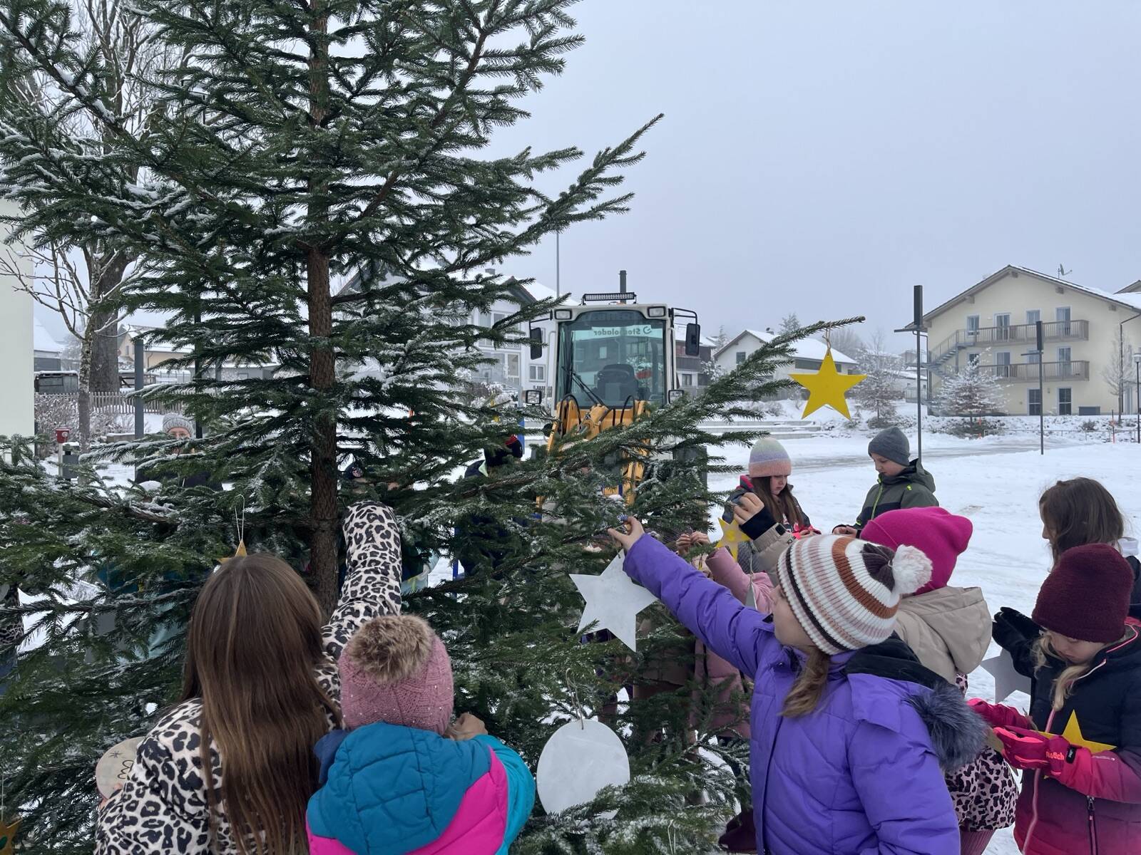 Auch in diesem Jahr durfte die Klasse 4a gemeinsam mit den Kindern des Kindergartens die große Tanne in der Schmidinger Mitte festlich schmücken.