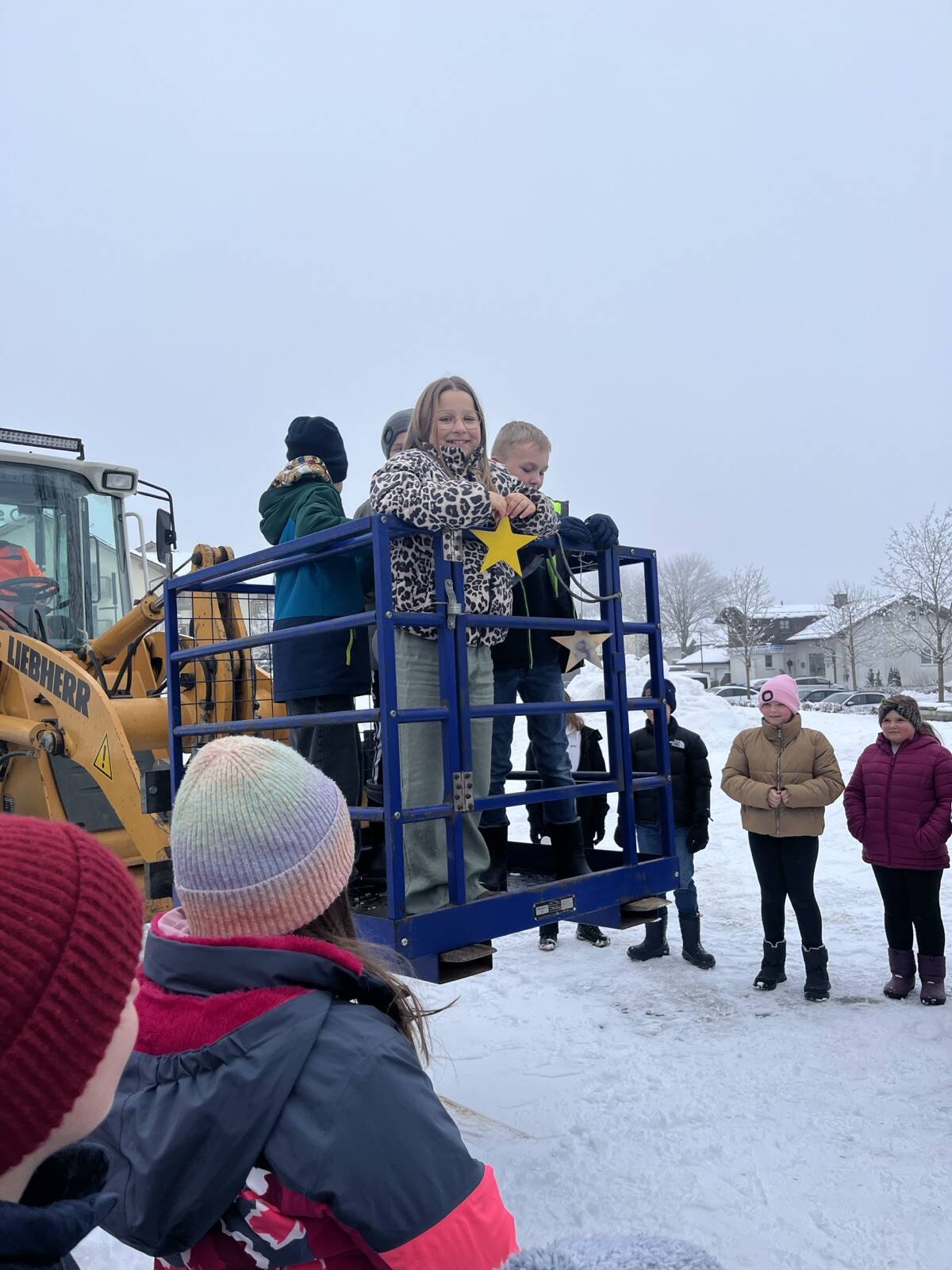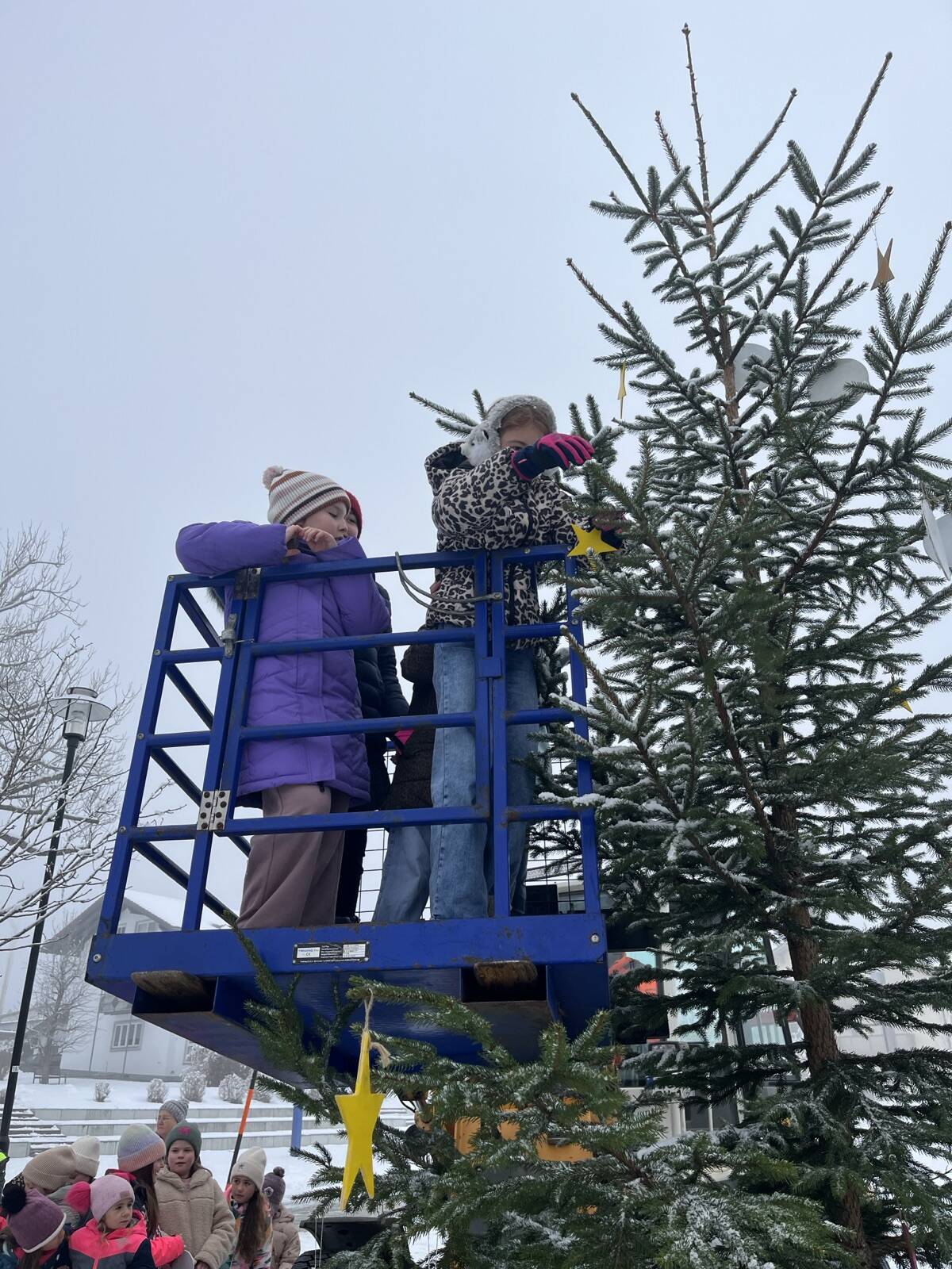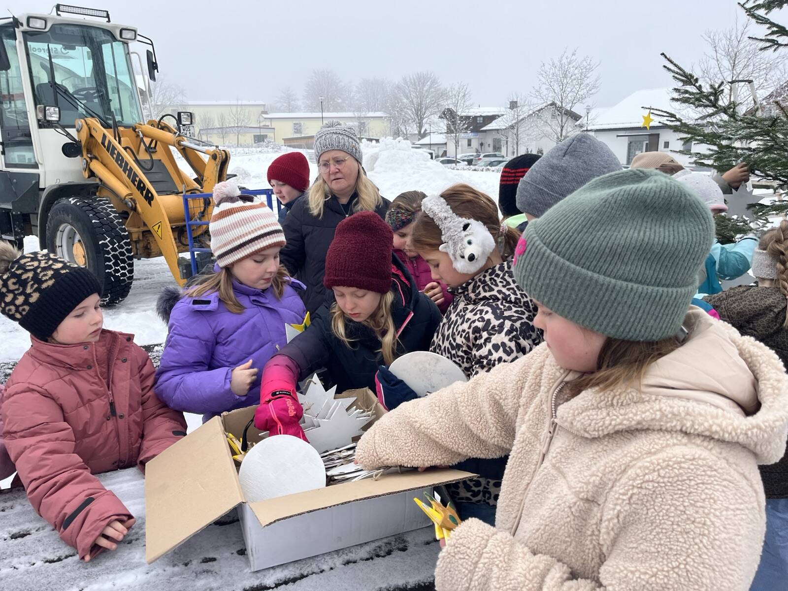 Auch in diesem Jahr durfte die Klasse 4a gemeinsam mit den Kindern des Kindergartens die große Tanne in der Schmidinger Mitte festlich schmücken.