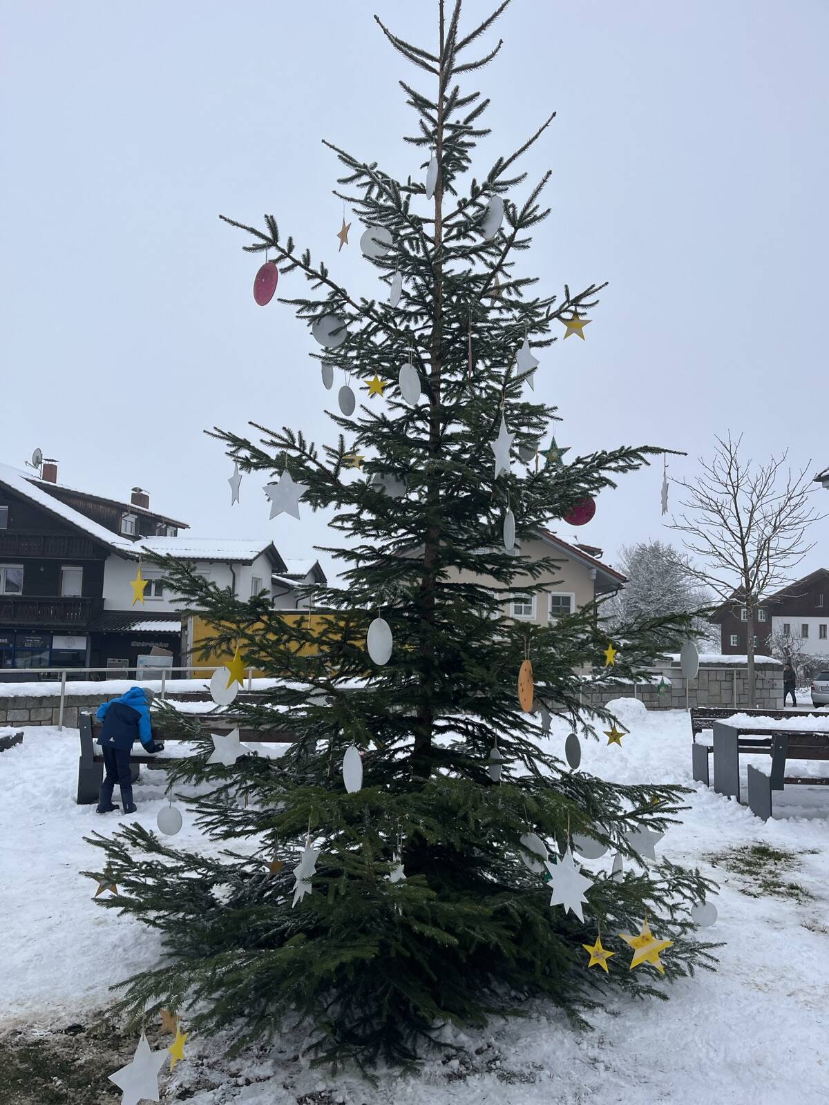 Nun erstrahlt der Christbaum wieder und sorgt im gesamten Ort für eine schöne, festliche Atmosphäre in der Adventszeit und an Weihnachten.