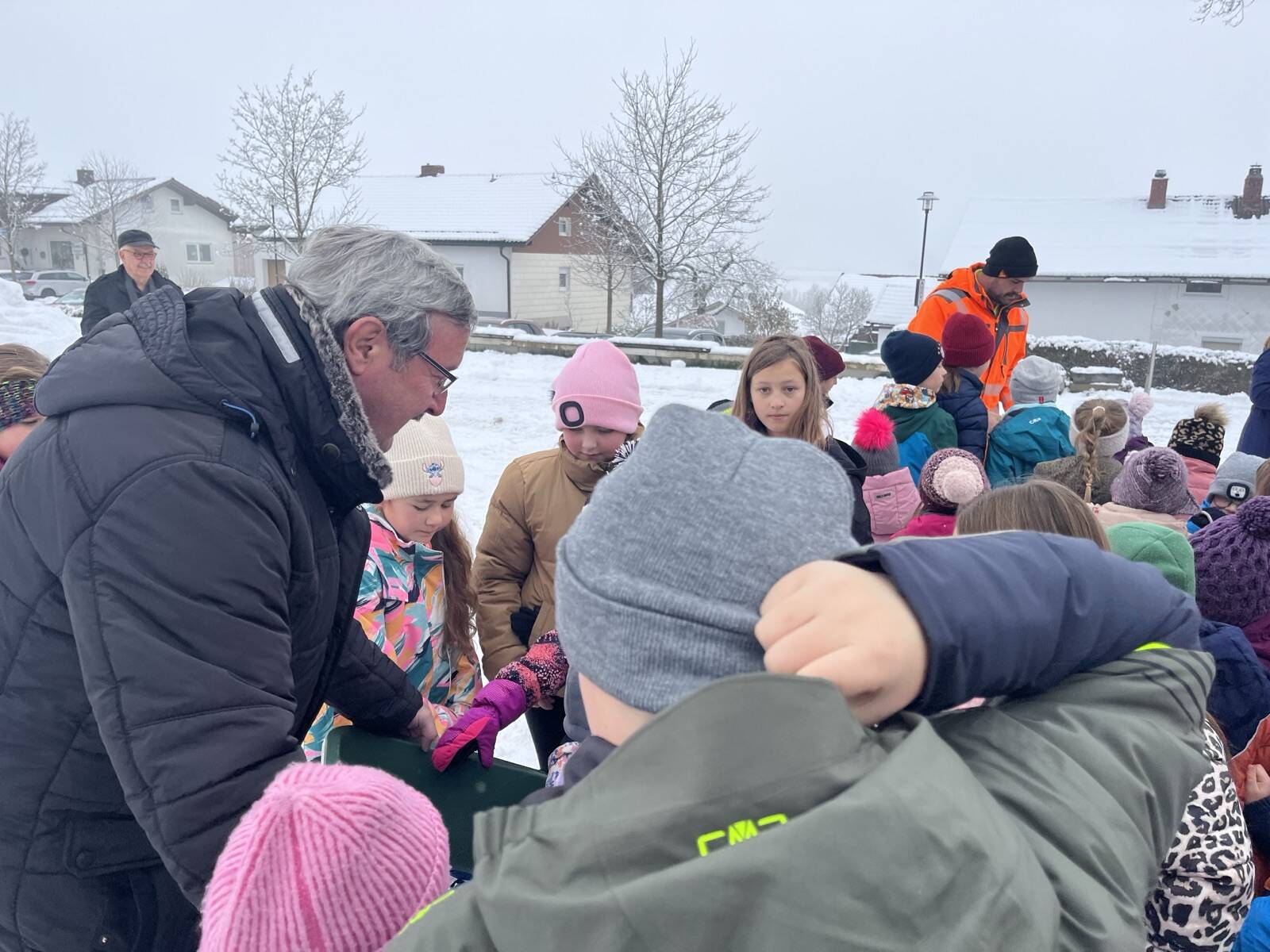 Unterstützung bekamen sie vom Bauhof-Team und unserem Herrn Bürgermeister, der den Kindern zum Abschluss auch kleine Süßigkeiten überreichte. Vielen Dank dafür!