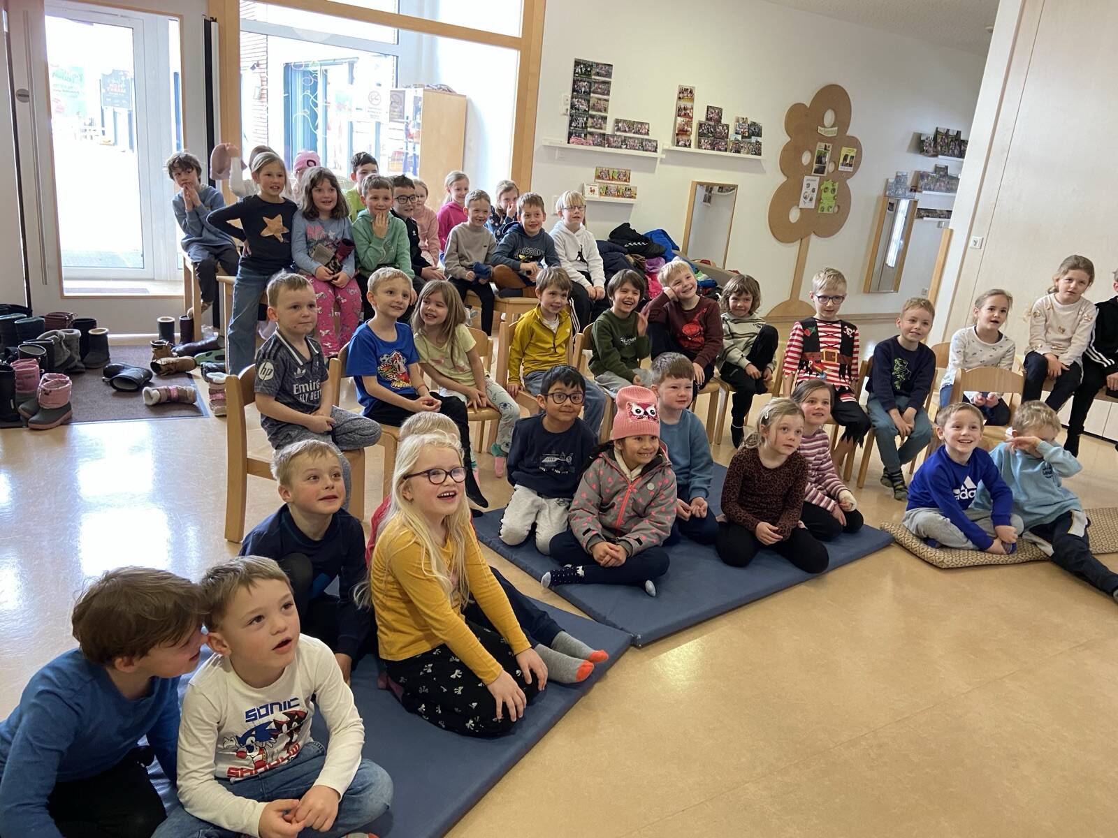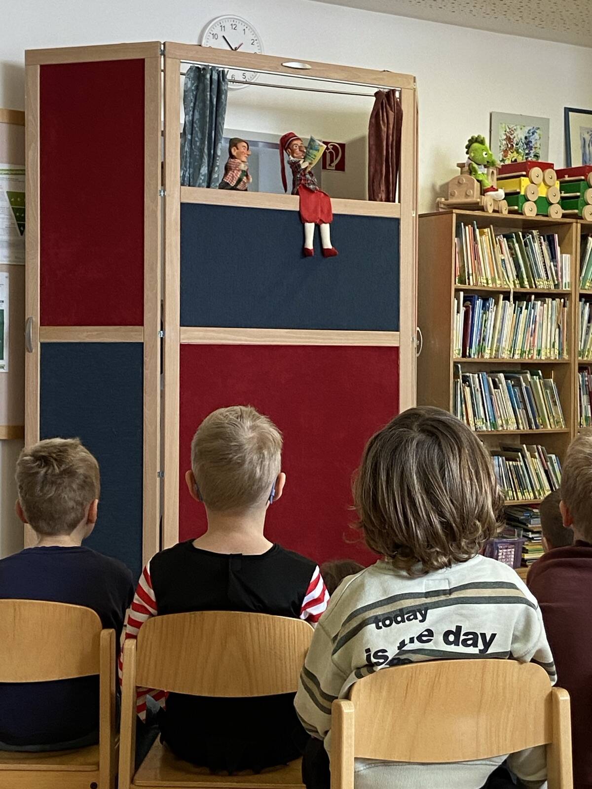 Das nächste Treffen fand schließlich im Kindergarten statt. Die Schülerinnen und Schüler der 1. Klasse waren zu Besuch und durften zunächst ein unterhaltsames Kasperltheater erleben. Mit großer Aufmerksamkeit verfolgten sie die spannende Geschichte. Anschließend besuchten die Schulkinder die einzelnen Gruppenräume des Kindergartens. Dort wurde gemeinsam gespielt, gesungen, gelacht und erzählt. Für viele war es ein schönes Wiedersehen mit vertrauten Räumen und Erzieherinnen.