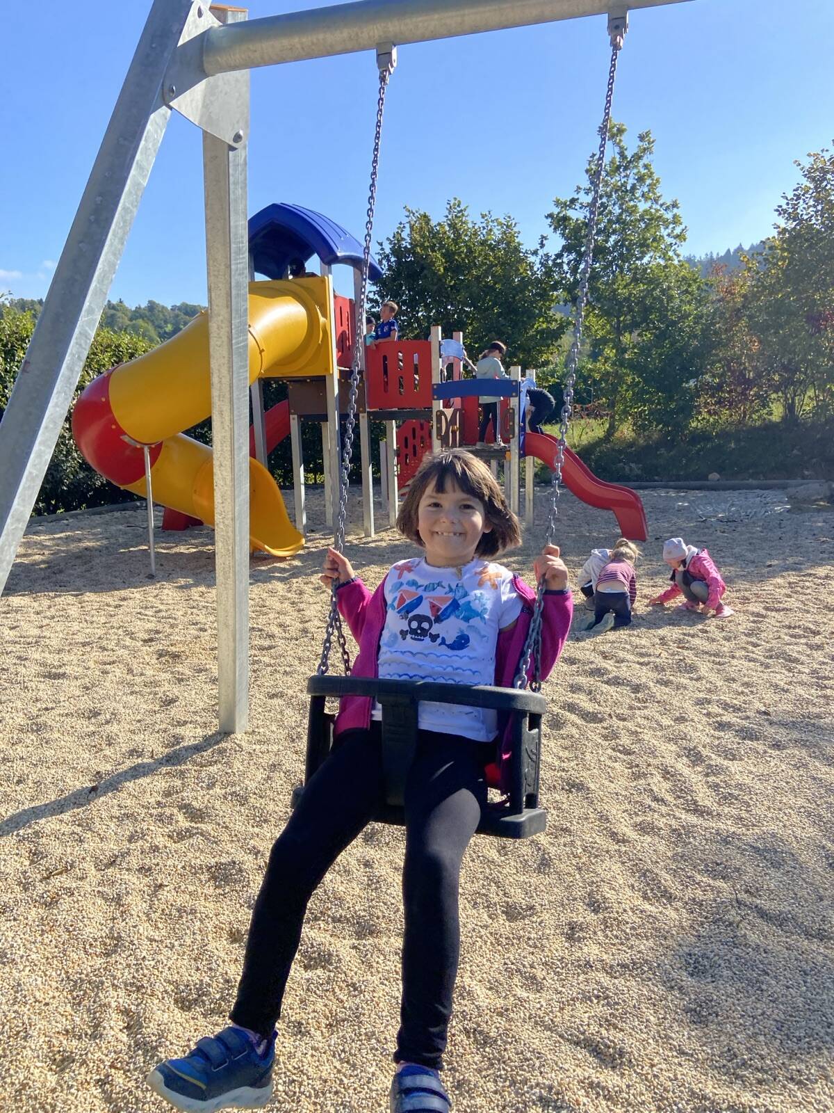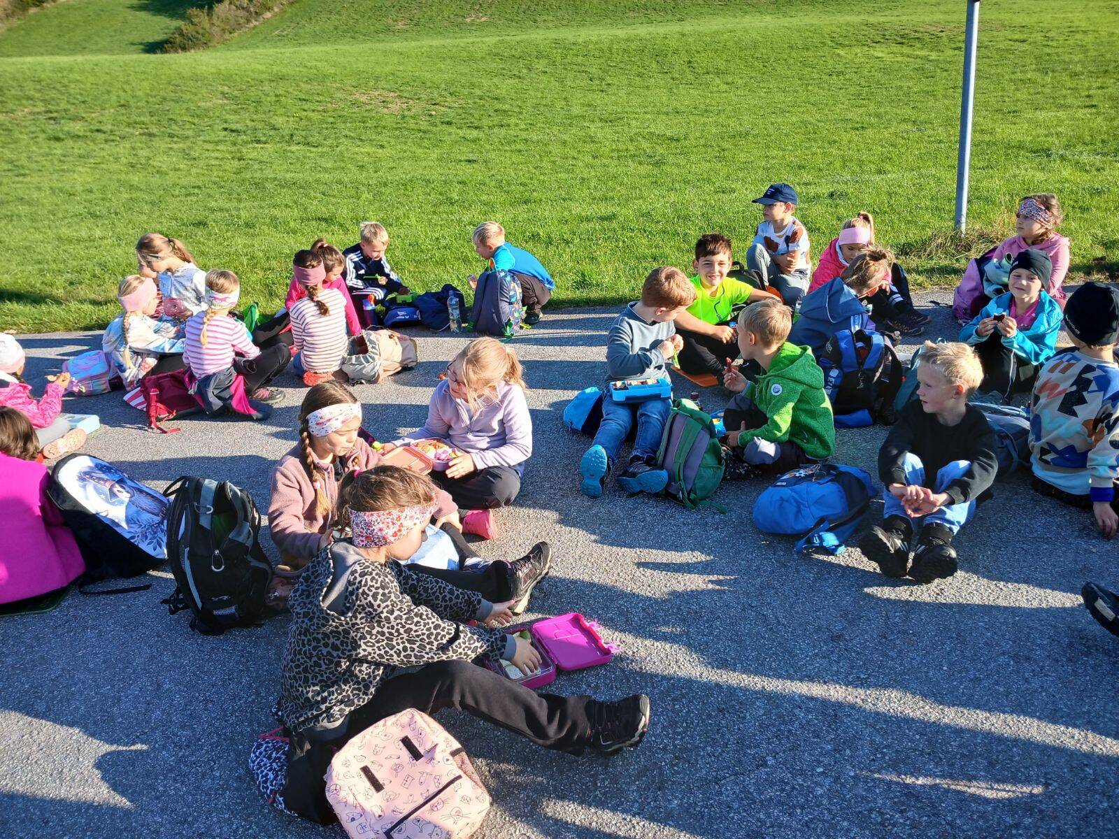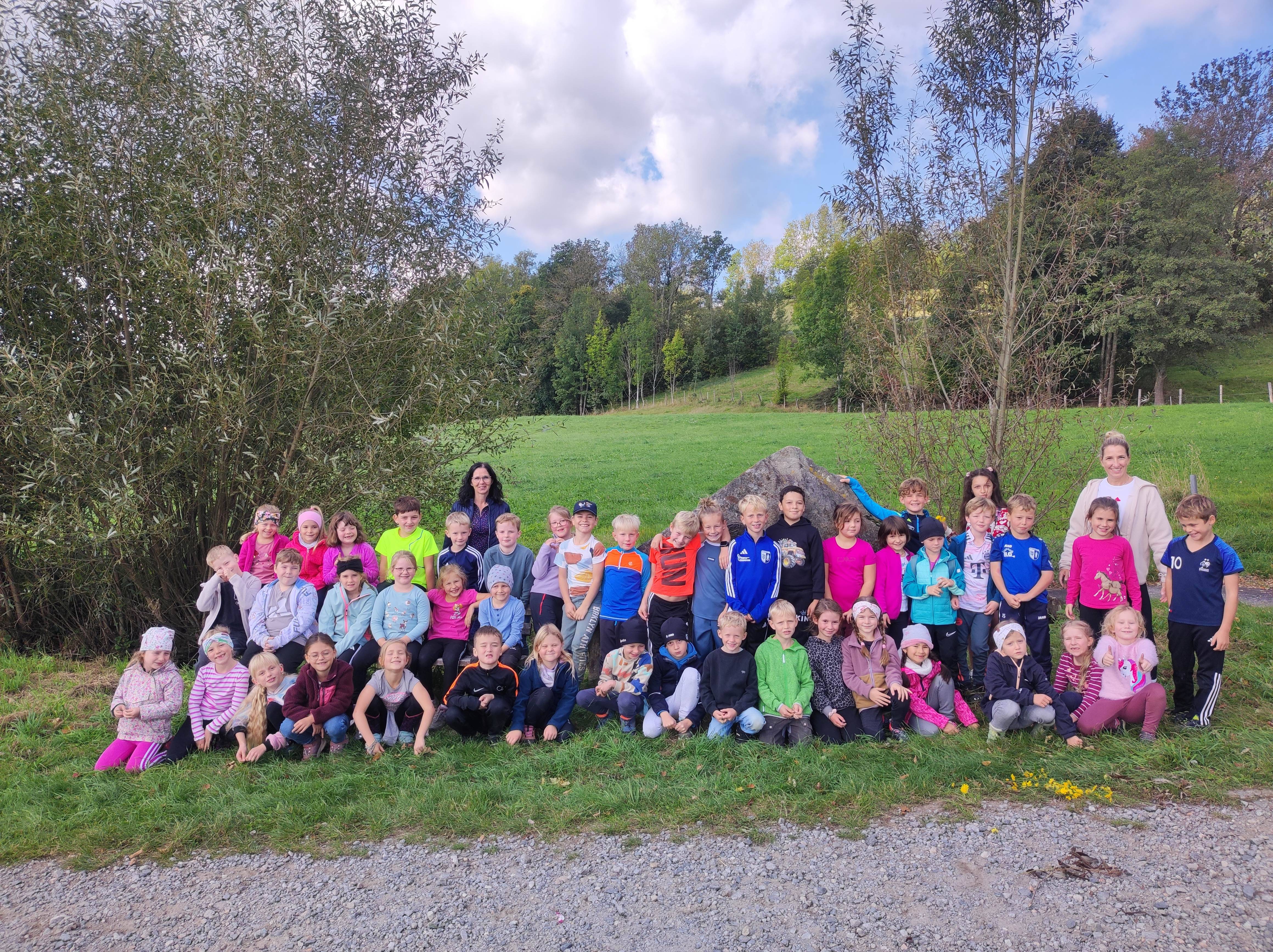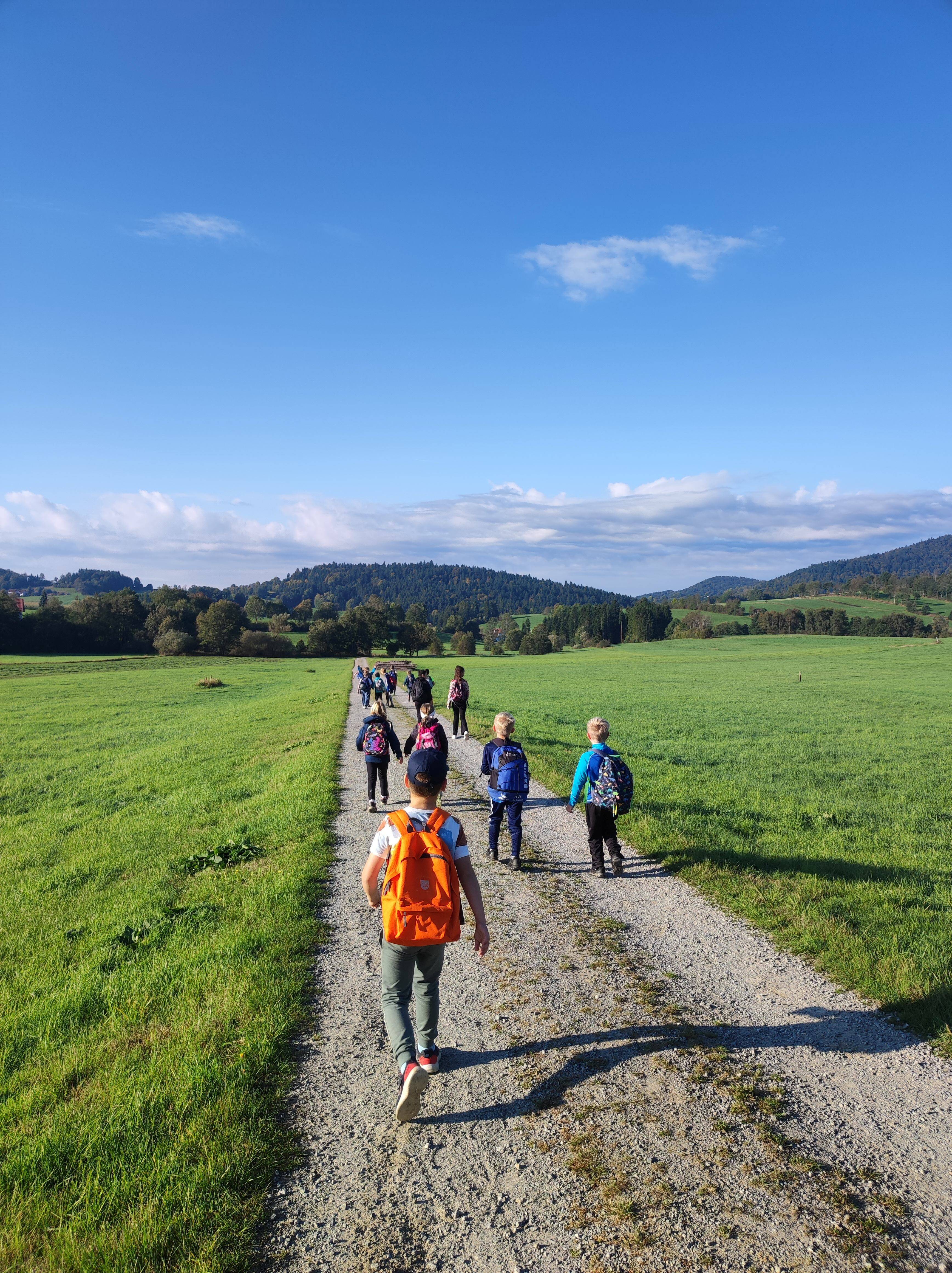 Die erste und zweite Klasse starteten ihre Wanderung über den idyllischen Graineter Kessel. Der Weg führte bis zur „Alten Schule“ in Fürholz. Dort wartete nicht nur eine wohlverdiente Pause, sondern auch ein Spielplatz, der für leuchtende Kinderaugen sorgte. Ob Schaukeln, Klettern, Rutschen oder gemeinsames Picknick, die Kinder genossen die Zeit in vollen Zügen und stärkten sich für den Rückweg.
