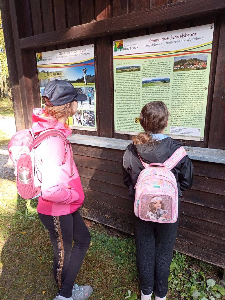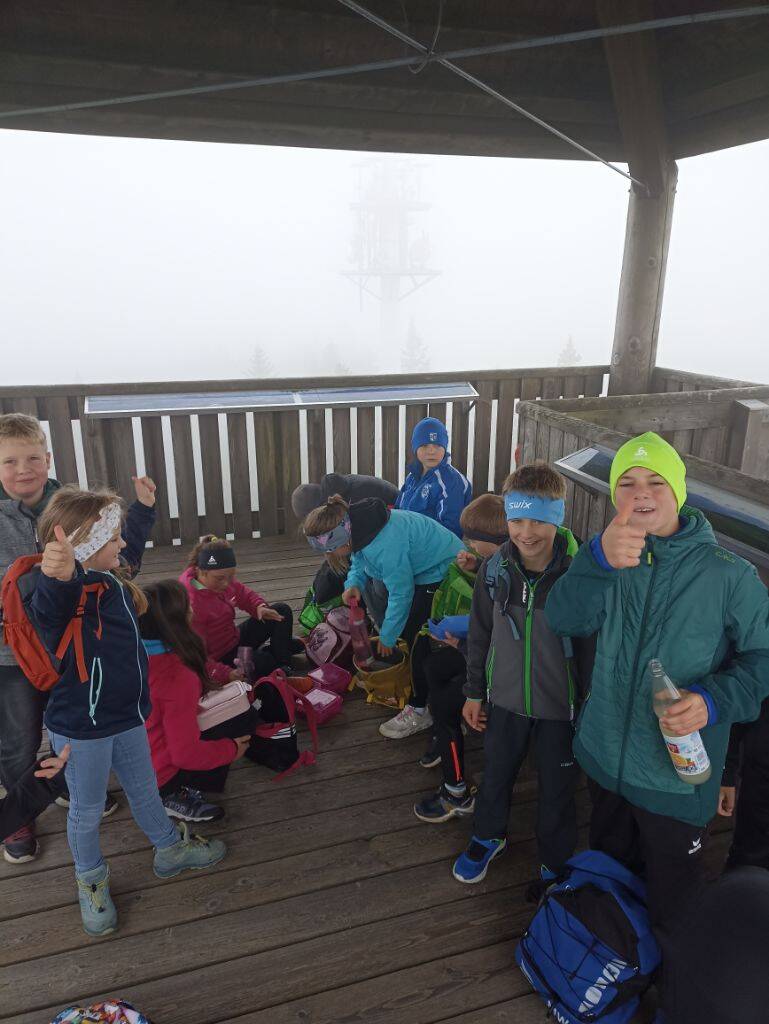 Die älteren Schülerinnen und Schüler der Klassen 3 und 4 hatten ein sportliches Ziel: den Haidel mit seinem markanten Aussichtsturm. Ab Obergrainet ging es bergauf, vorbei an Infotafeln, die mit spannenden Quizfragen zum Mitdenken einluden.