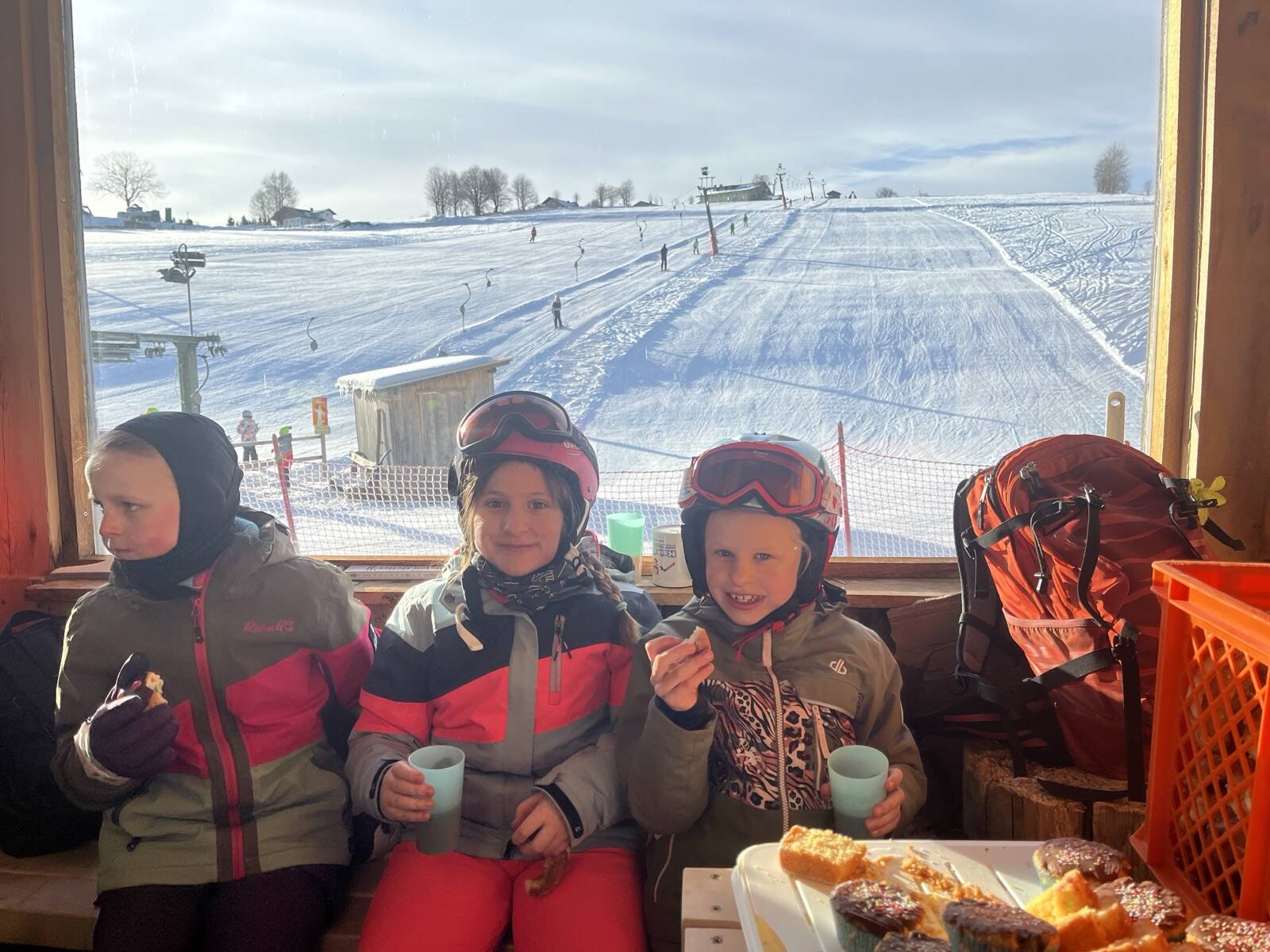 Für das leibliche Wohl war ebenfalls bestens gesorgt: Der Elternbeirat verwöhnte uns mit leckeren Laugenbrezen, Muffins und warmem Tee. Viele engagierte Mamas halfen außerdem beim Bobfahren und in der Wärmehütte, sodass sich alle Kinder zwischendurch aufwärmen und stärken konnten.