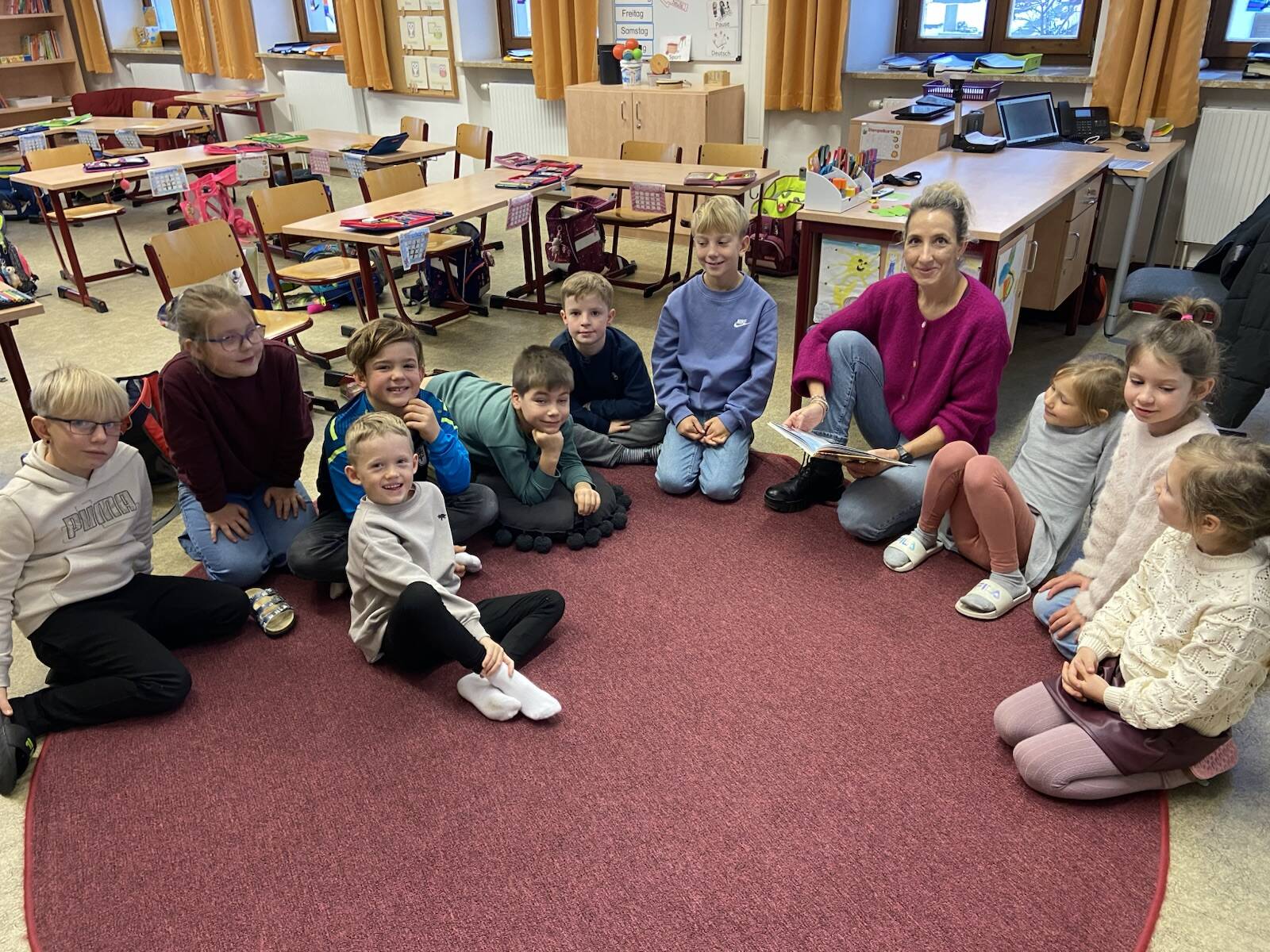 Nach einer kleinen Feierstunde anlässlich der Ehrung im Rahmen des bayernweiten Lesescreenings Byles (siehe entsprechenden Artikel), durften die Klassen 1/2 und 3/4 jeweils besondere Vorlesestunden genießen.
