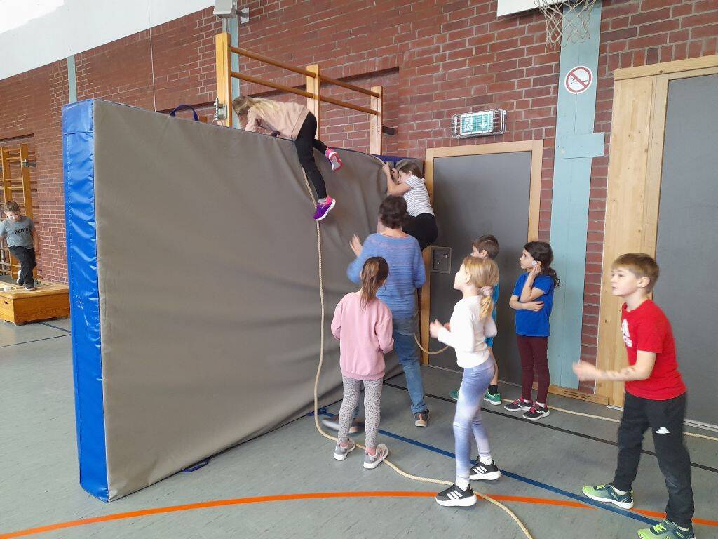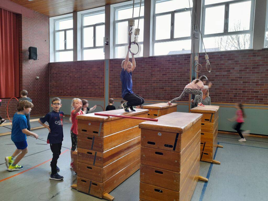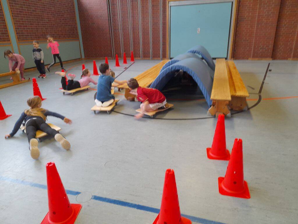 Die Klasse 2a hatte die Schulanfänger des Kindergartens St. Elisabeth Hinterschmiding zu einer phantastischen Bewegungswelt eingeladen.