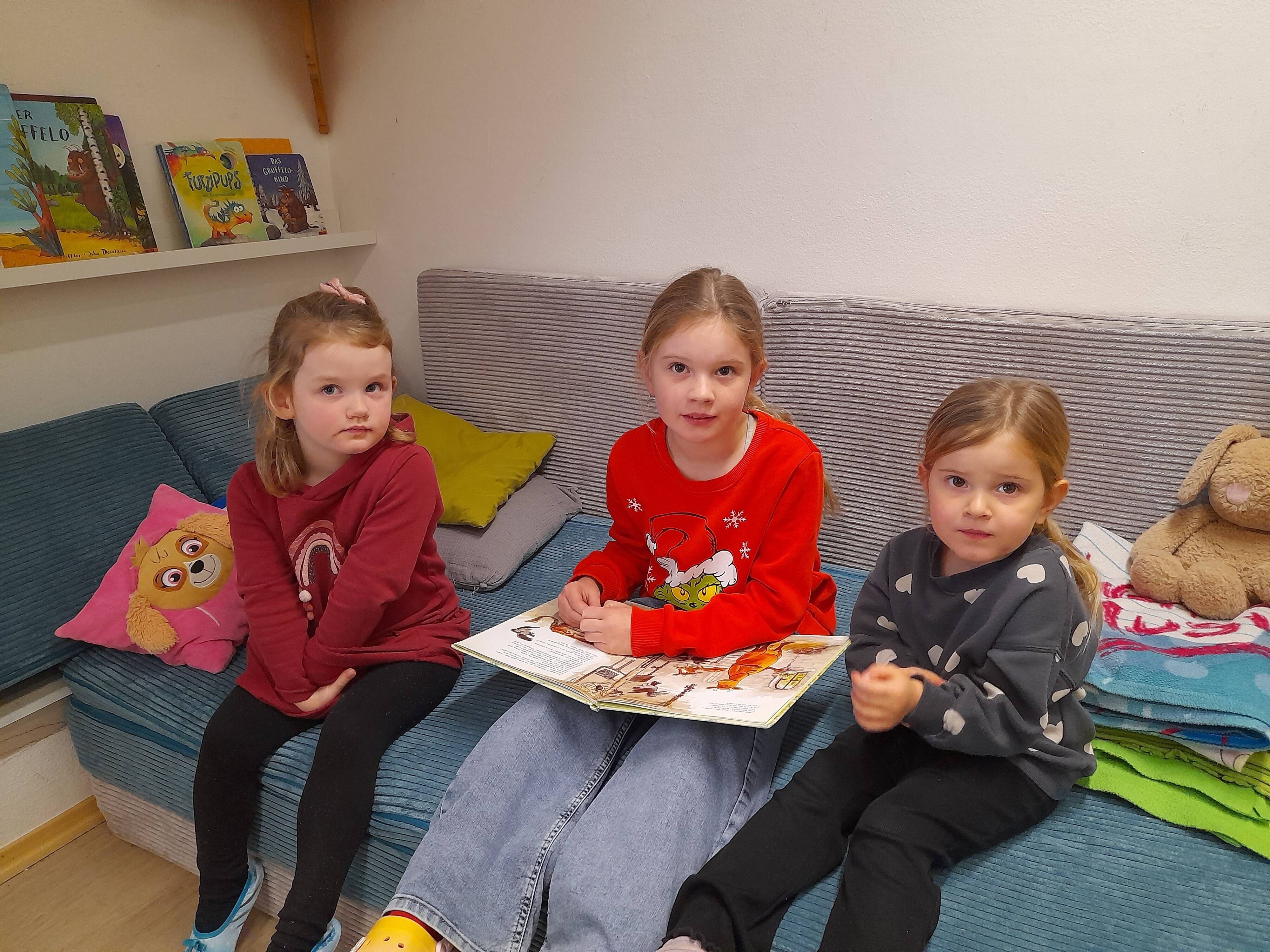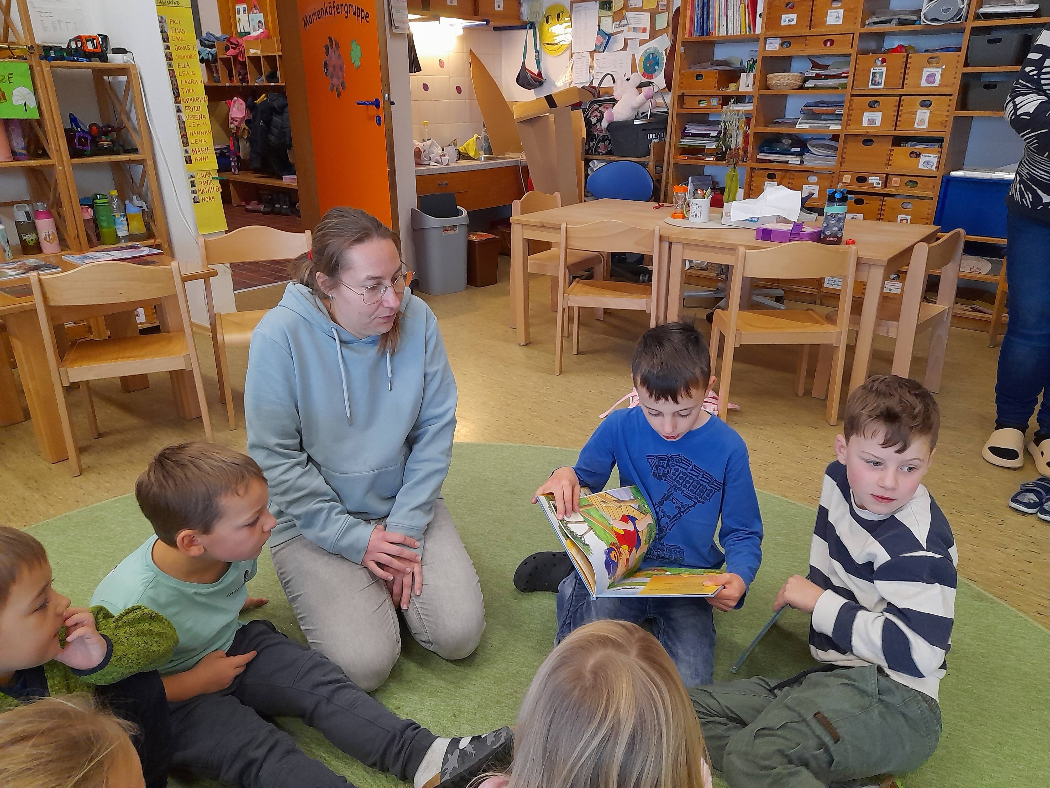 Die Klasse 2a machte sich auf den Weg in den örtlichen Kindergarten. Dort lasen die Schüler den Kindergartenkindern aus geeigneten Büchern vor. Für beide Seiten war es eine wertvolle Begegnung – die Großen konnten ihr Selbstvertrauen stärken und die Kleinen lauschten gespannt den Geschichten.