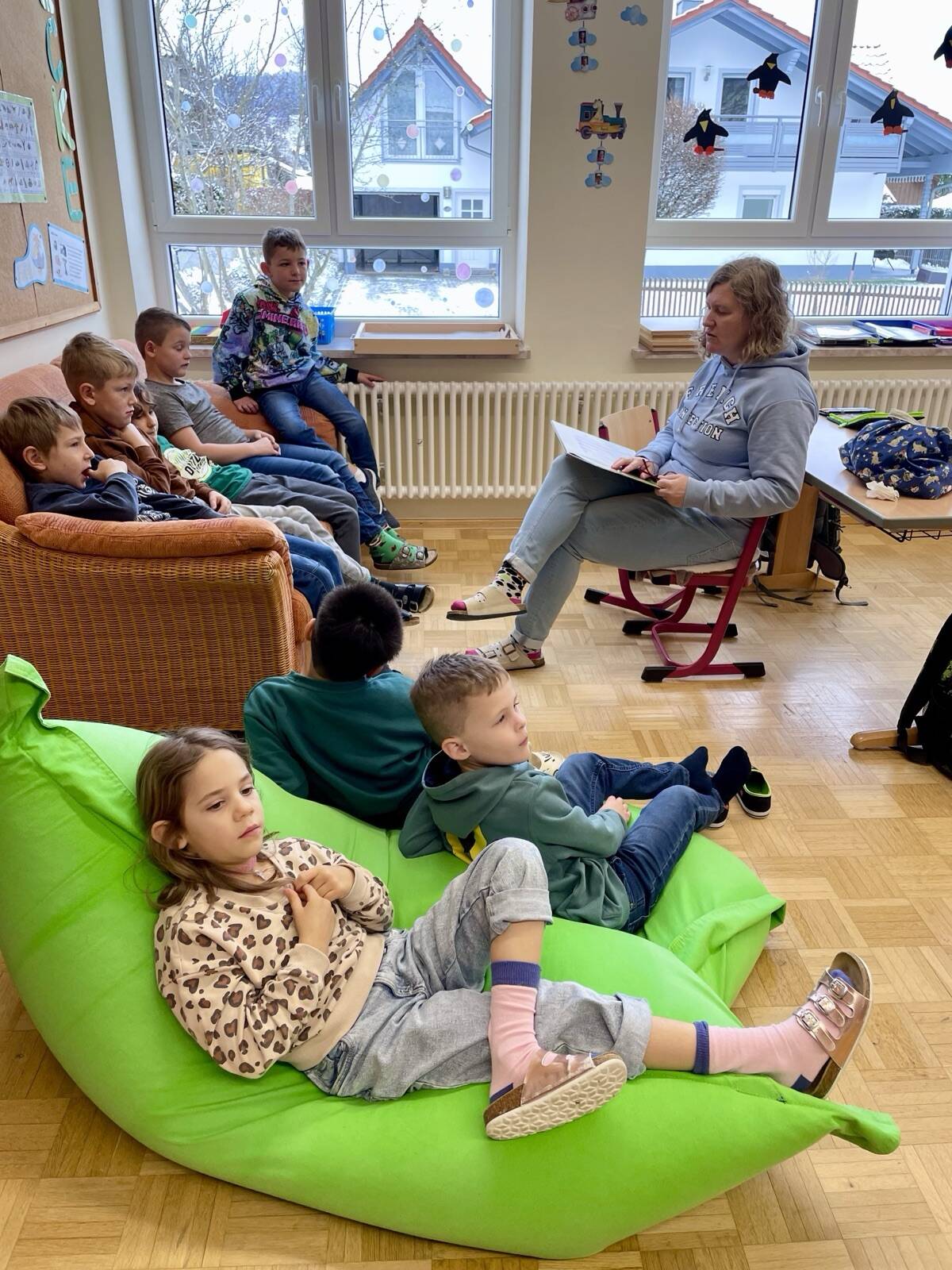 Für die Kinder der Klasse 1a wurde der Vorlesetag zu einem besonderen Erlebnis: Fünf Mamas kamen zu Besuch und lasen den Schülerinnen und Schülern in Kleingruppen aus ausgewählten Kinderbüchern vor. Jedes Kind durfte sich vorher zwei Bücher aussuchen, aus denen dann vorgelesen wurde. So entstand eine gemütliche und persönliche Vorleseatmosphäre, die den Kindern sichtlich Freude bereitete.