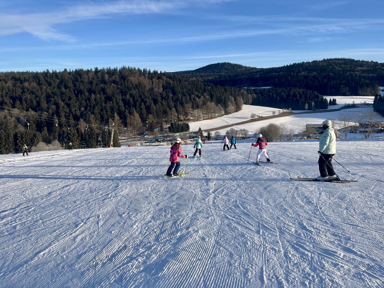 Trotz morgendlicher Kälte wurden wir mit herrlichem Sonnenschein belohnt. Dank der großen Einsatzbereitschaft des SC Herzogsreut, der diesen Vormittag den Liftdienst zuverlässig und engagiert für unsere Kinder übernahm, war beste Pistengaudi garantiert. Durch die Unterstützung zahlreicher Helfereltern konnten die Kinder in kleinen Gruppen unterwegs sein, was für Sicherheit und Spaß sorgte.